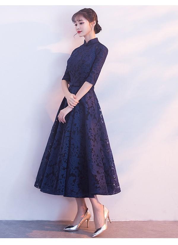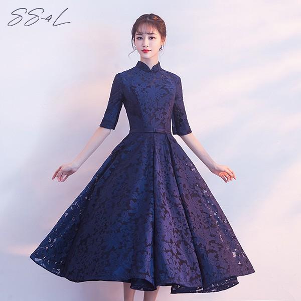 ドレス 大人 ピアノ 発表会 ミモレ丈 ぽっちゃり 大きいサイズ イブニングドレス 演奏会 ピアノ発表会 袖付き ワンピース Aライン ステージドレス 二次会 女子会 成人式 パーティードレス 大人可愛い