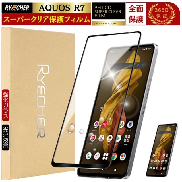 スーパークリア 全面保護 AQUOS R7 フィルム アクオス R7 ガラスフィルム SH52C AQUOSR7 保護フィルム 全面保護 液晶フィルム 強化ガラス RYECHER 黒縁 シャープ アクオス クリア 保護シート SH-52C / A202SH 液晶保護フィルム
