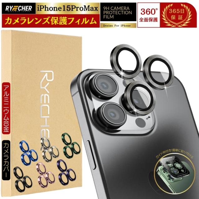 アルミ合金 ピンポイント保護 ガイド枠付 iPhone15ProMax レンズカバー iPhone15Pro Max レンズフィルム iPhone15 Pro Max カメラフィルム iPhone 15 ProMax カメラ保護 カメラカバー アイフォン15プロマックス レンズカバー RYECHER カメラ保護フィルム 合金