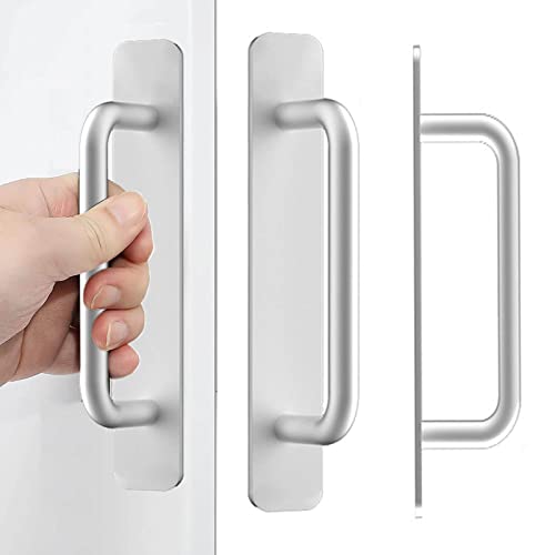 ドア取手 引き出し取手 2個セット 自己粘着式 シルバー ハンドル ノブ 両面テープ式 アルミニウム合金 戸棚引きハンドル 取っ手 引き戸開閉補