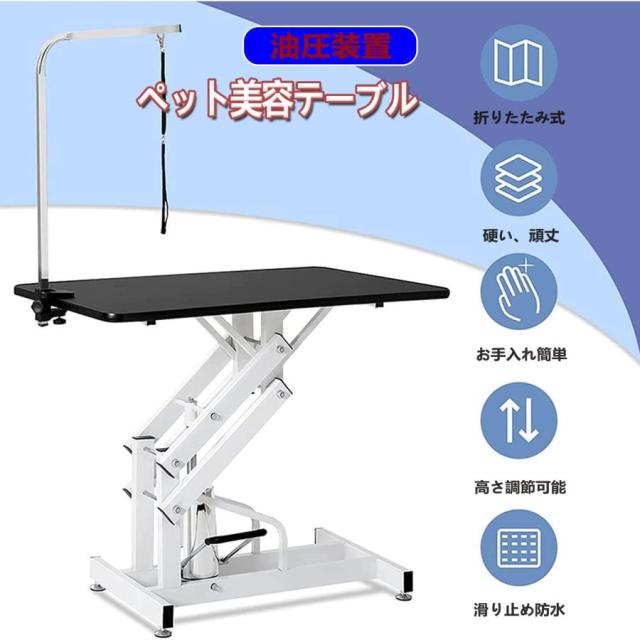 トリミングテーブル 油圧式 大型犬/中型犬/小型犬 猫/犬用グルーミングテーブル 高耐久 頑丈 ペット トリミング台 油圧昇降式テーブル 耐荷重150KG 調節可能なア
