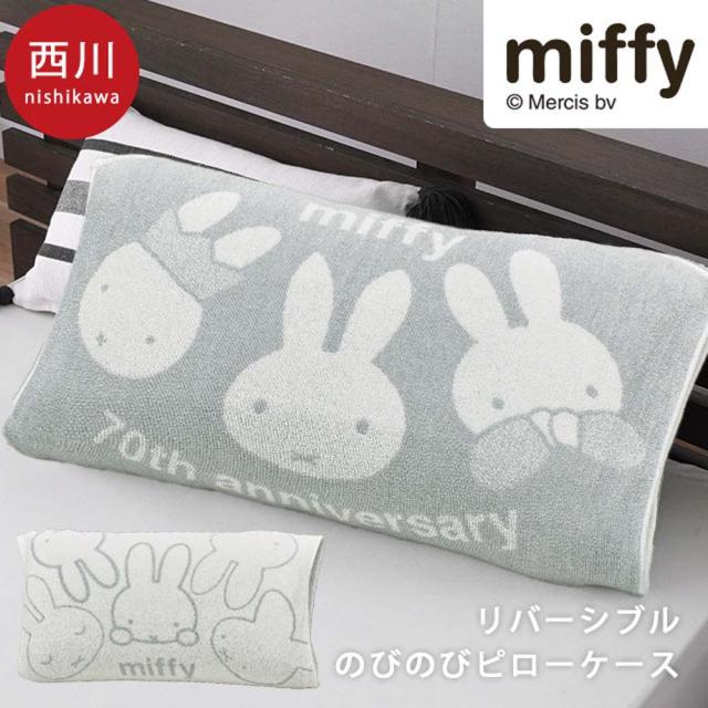 西川 枕カバー のびのびピローケース 34×64 綿 43×63用 ワイドサイズ ミッフィー miffy ピロケース パイル タオル のびのび フィット