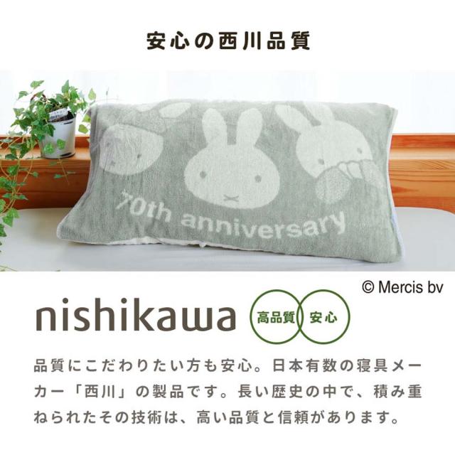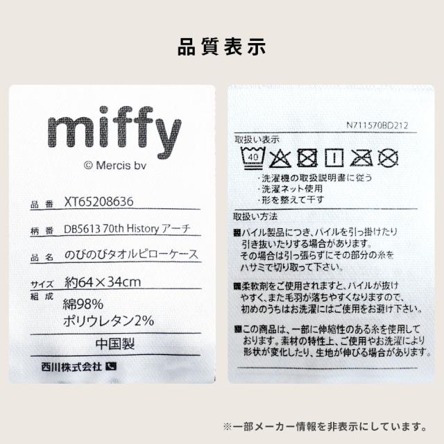 [keyword|西川 のびのびピローケース 34×64cm 綿 ワイドサイズ ミッフィー miffy ピロケース 枕カバー まくらカバー パイル タオル のびのび フィット 43×63用]