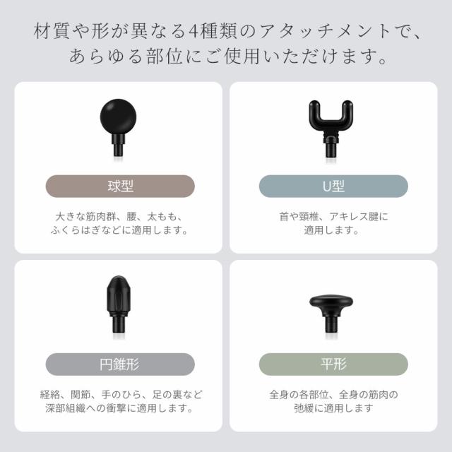 4種類のアタッチメント、体のあらゆる部位にフィットします。