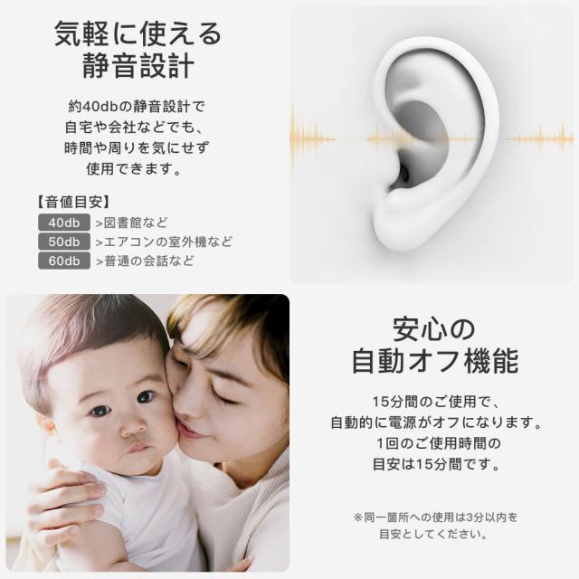 約40dbの静音設計で自宅や会社などでも、時間や周りを気にせず使用できます。