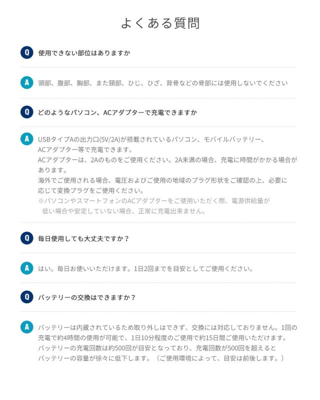 ※ 他のマッサージ機器との併用はお避け下さい。