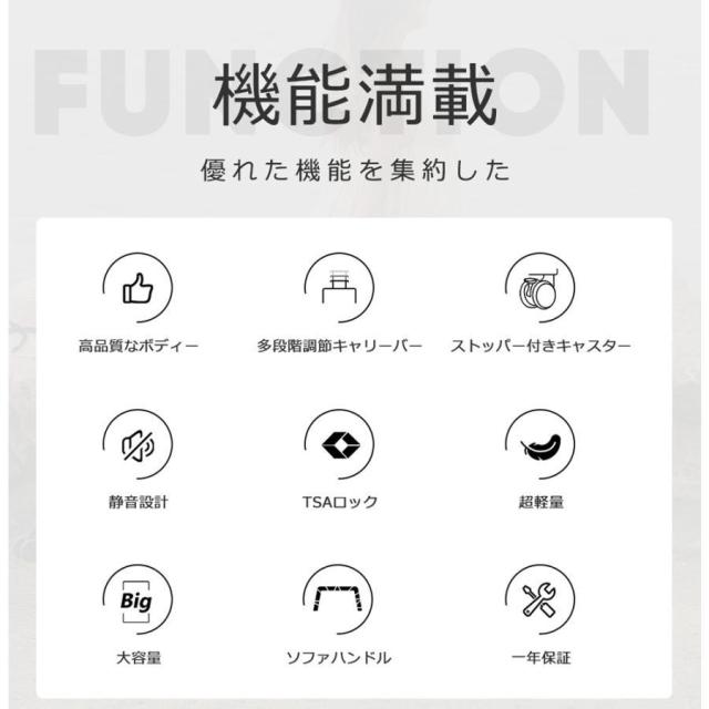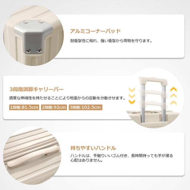 【超軽量】製品の耐久性を保証する上、ボディの重量が減らすことができ、より気軽にお出かけできます。女性の方や、長時間スーツケースを引いて移動する方には軽量タイプがおすすめです。軽量タイプなら旅先での様々なシーンでの負担もぐんと軽減でき、出張・旅行にぴったりです。