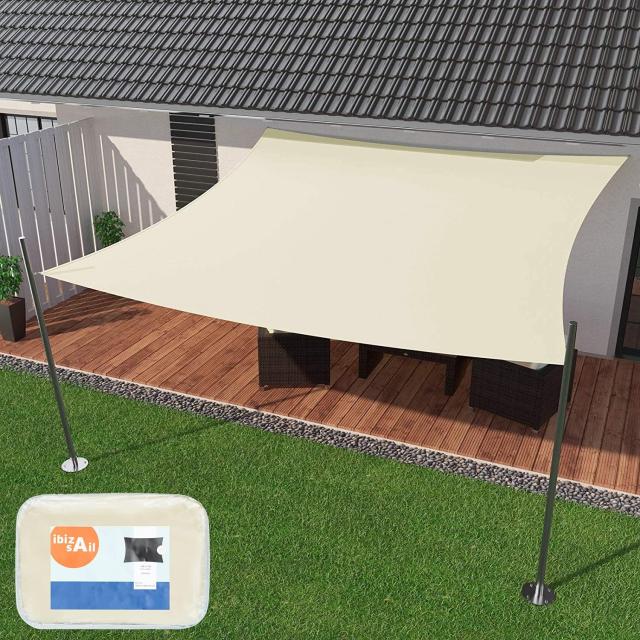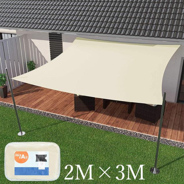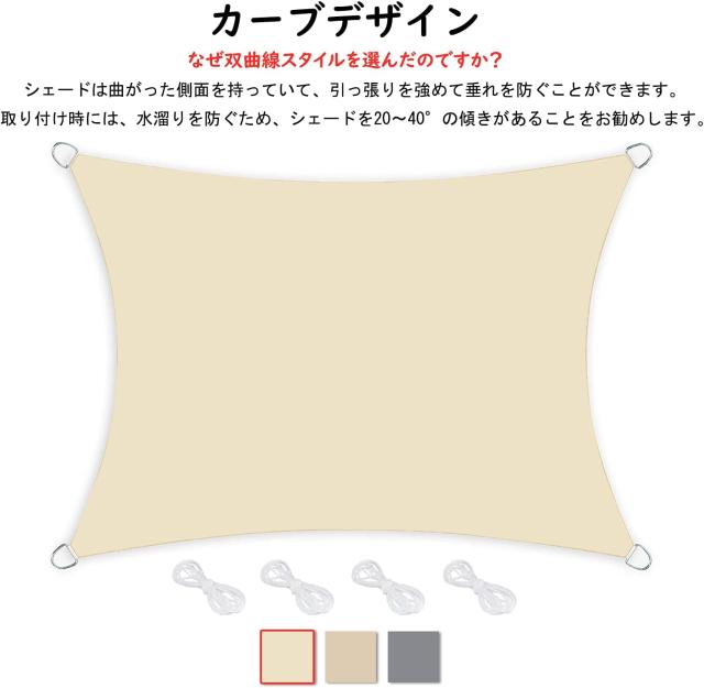 日除けシェード オーニング カーブデザイン・四角 撥水シェード UVカット UPF50+ 屋外・庭先・ベランダ用 収納袋付き 2MX3M ステンレス鋼 クリーム