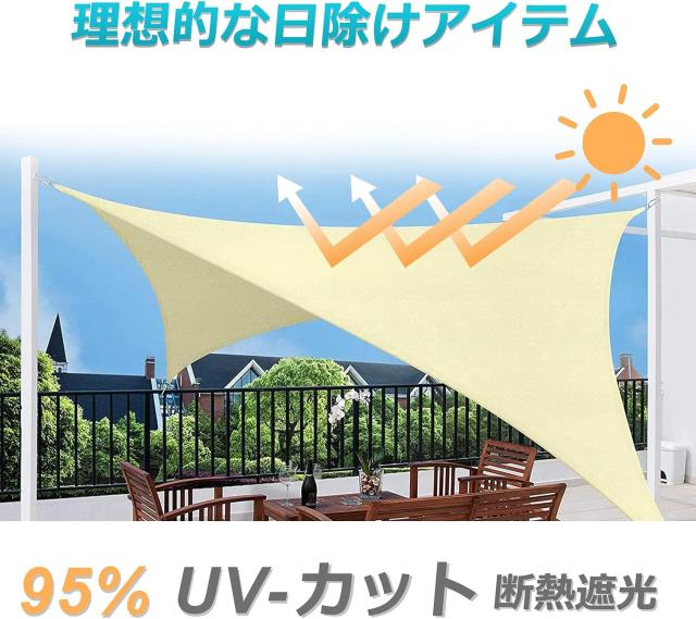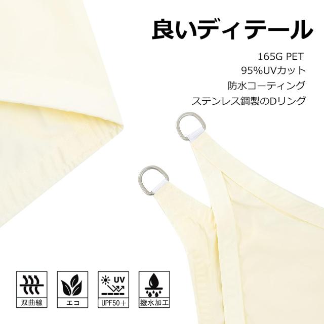 【理想的な日除けアイテム】最高値のUPF50+の生地とステンレス鋼製のDリングで作られています。強い日差しでも安心、シェードは紫外線を95%カットし、断熱・遮光効果にも優れ、お部屋の中は日陰にいるようなひんやりと涼しい空間を感じることができます。