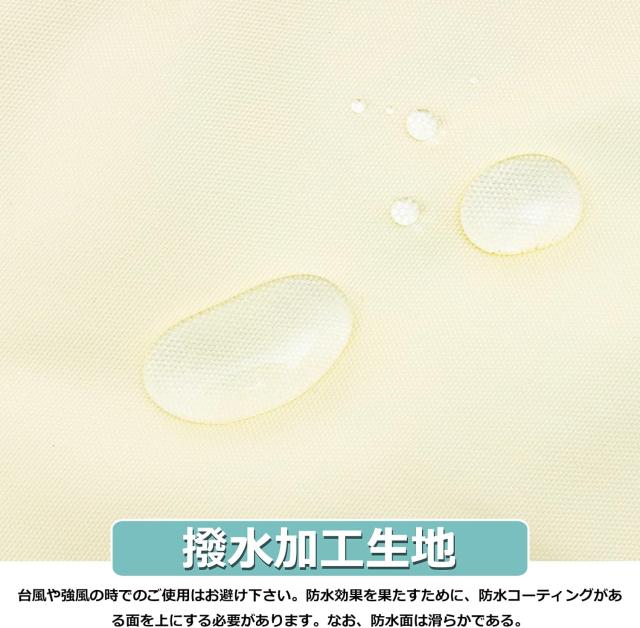 【防水性能】シェードは撥水加工生地を採用しています。防水レベルは2級で、水圧は500パで、普通の防水をサポートします。ただし、6級以上の大雨と持続的な雨はサポートされていません。台風や強風の時でのご使用はお避け下さい。防水効果を果たすために、防水コーティングがある面を上にする必要があります。なお、防水面は滑らかである。