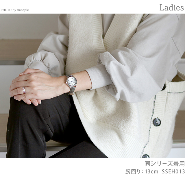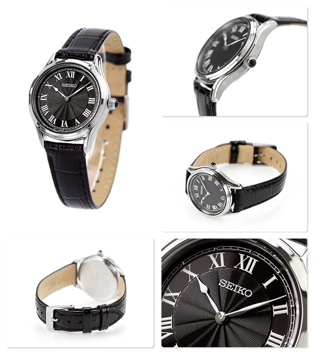 11月10日発売予定 予約受付中 正規品 7年保証キャンペーン 送料無料 セイコーセレクション ナノユニバース コラボレーション 丸型 流通限定 レディース 腕時計 ブランド SSEH011 SEIKO アナログ ブラック 黒 My Favorite Vintage時代を超えて愛されるヴィンテージスタイルの時計を目指して、人気セレクトシップ「ナノユニバース」とコラボレーションをしたモデルが登場。レザーストラップ色、ガラス入りりゅうず色、ダイヤルカラー等を「ナノユニバース」がセレクト。「ナノユニバース」らしい拘りの配色は落ち着いた雰囲気を持ち、日頃のどんなファッションにも相性抜群です。ダイヤルには、懐かしい雰囲気の太くはっきりとした、オールローマ数字のインデックスを採用。ダイヤル中央に施された放射状の型打ちと、外周部ミニッツレール上に配置されたキラリと光る12箇所の金属パーツがダイヤル全体に立体感と高級感を与えます。針は、スペード針にすることで、柔らかい印象に仕上げています。 2023年11月発売 ギフト プレゼント 記念品 母の日 敬老の日 クリスマス 誕生日 結婚記念日 就職祝い 卒業祝い 還暦祝い 20代 30代 40代 50代 60代