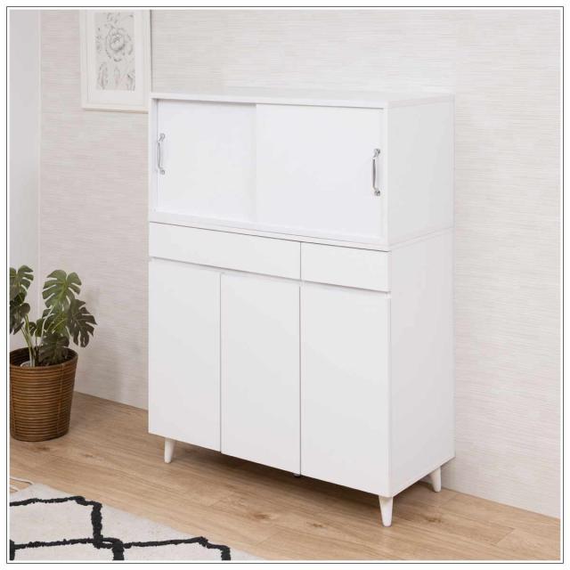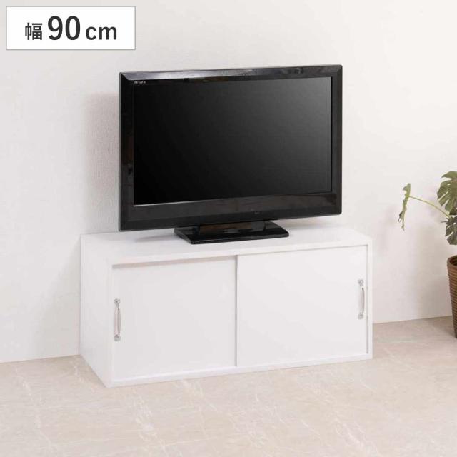 上置き棚 幅90cm 引戸式 ホワイトリビング ( 上置き 収納 家具 組み合わせ 引き戸 可動棚 追加 ローボード テレビ台 背面化粧 )