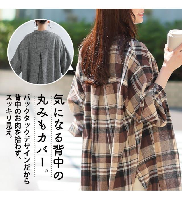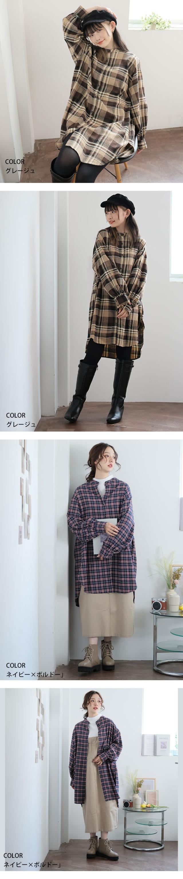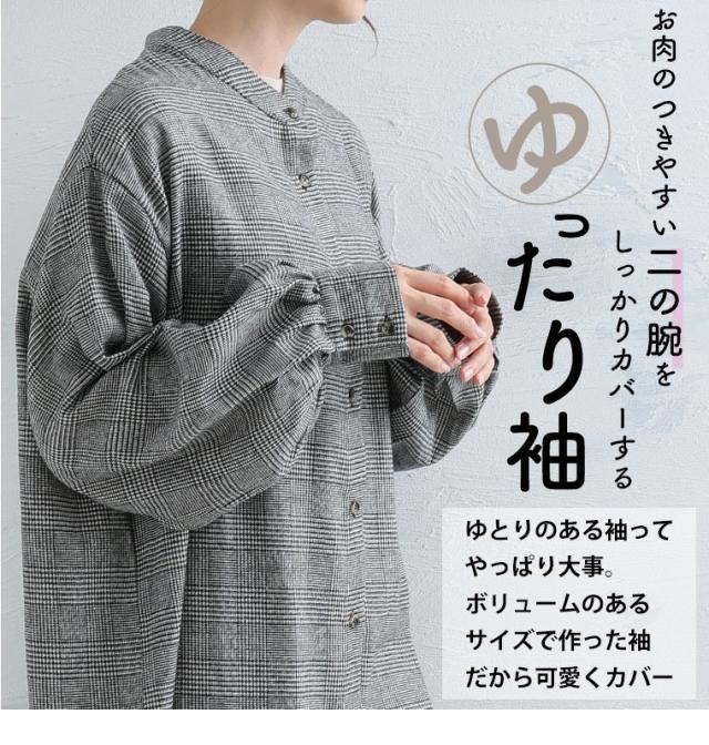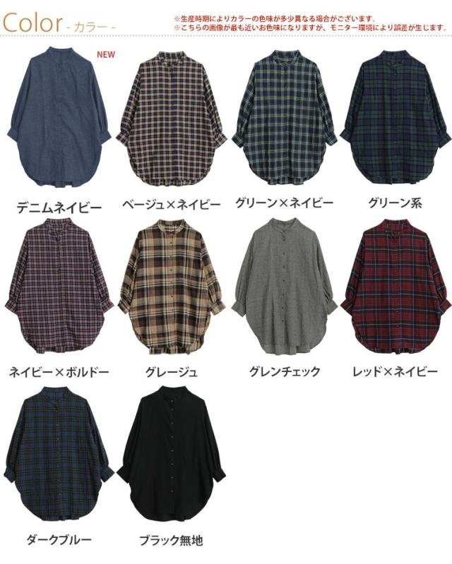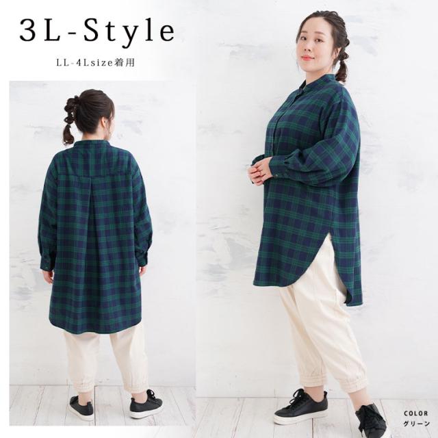 新作 大きいサイズ レディース トップス | 新色追加!! フランネル チェック バンドカラー 裾ラウンド チュニック [478109] LL 3L 4L 5L 6L 7L 8L