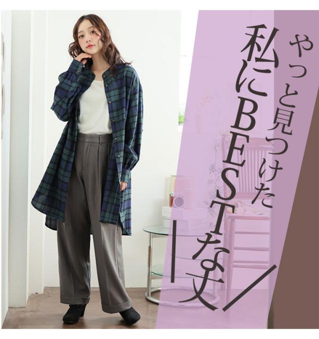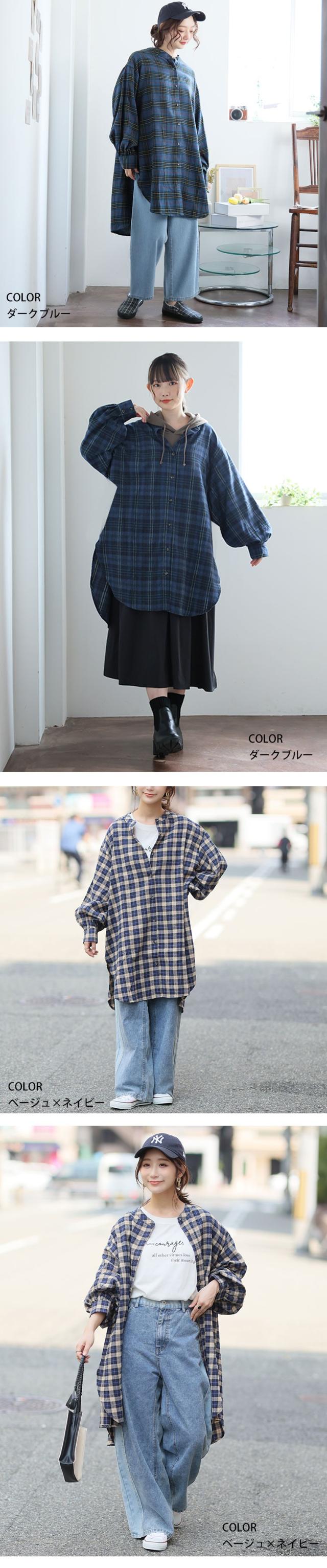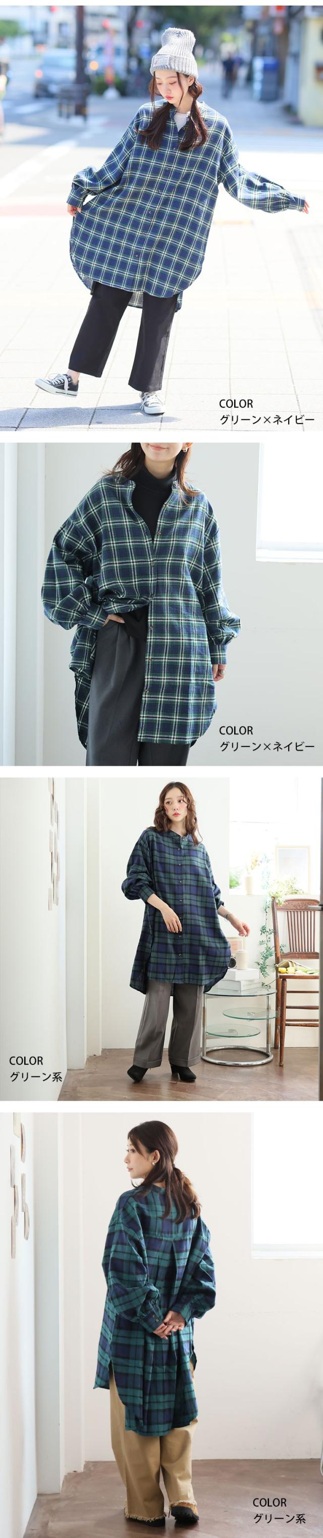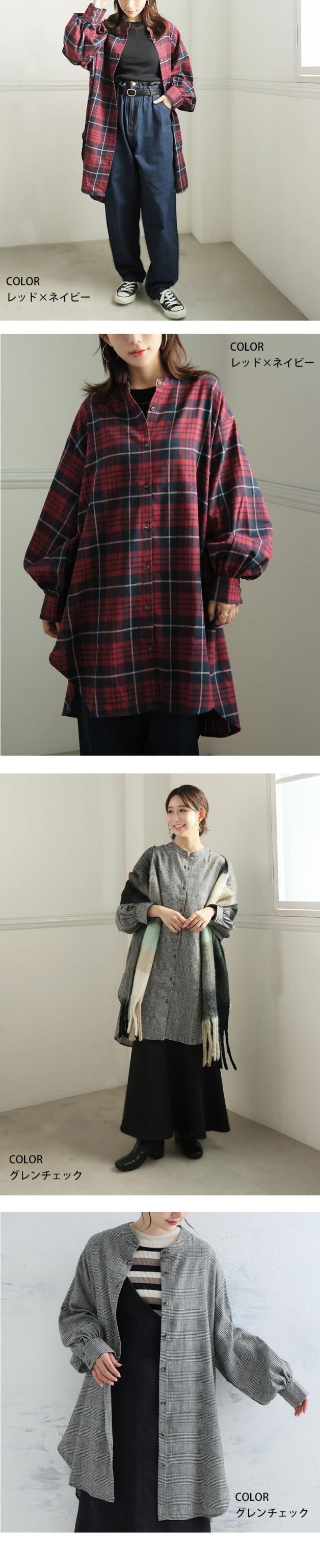 新作 大きいサイズ レディース トップス | 新色追加!! フランネル チェック バンドカラー 裾ラウンド チュニック [478109] LL 3L 4L 5L 6L 7L 8L