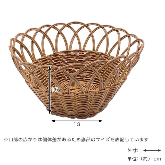 バスケット ブルーメ PEラタン フルーツバスケットL ( かご 収納 洗える 丈夫 カゴ 天然素材風 水洗い 小物収納 小物入れ 丸型 フェイク おしゃれ キッチン フルーツ 果物 お菓子 パン リビング 透かし編み )