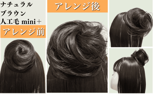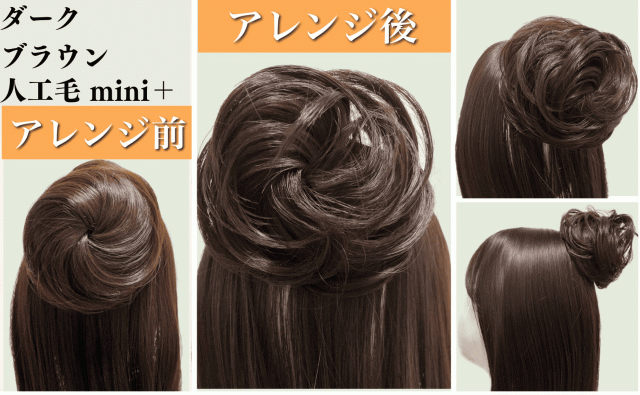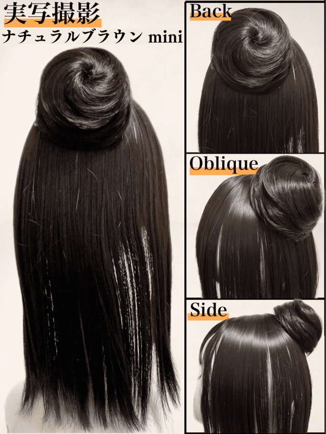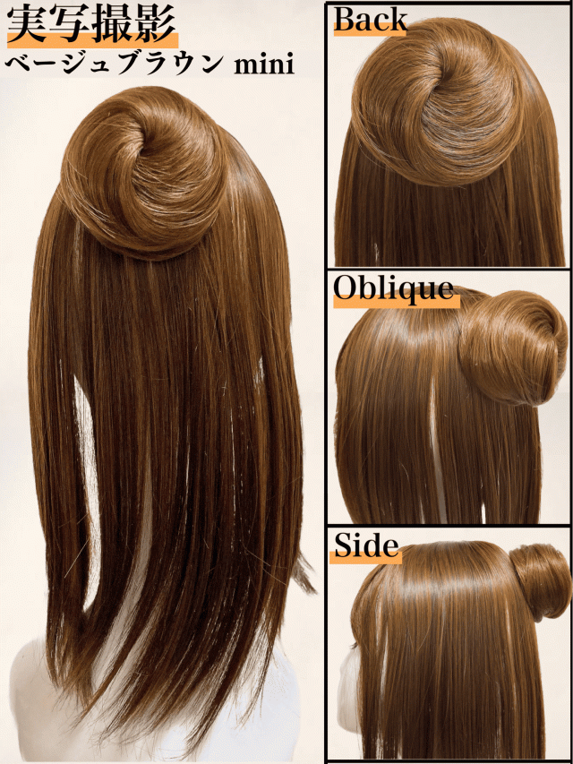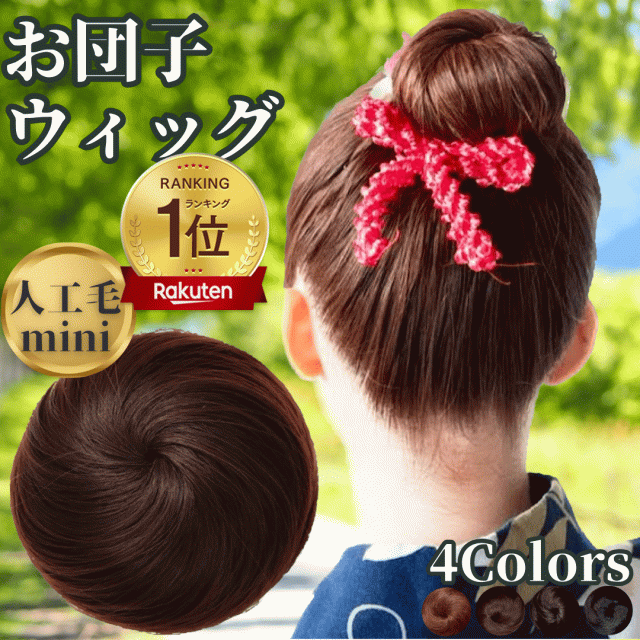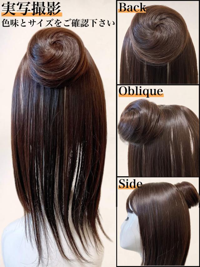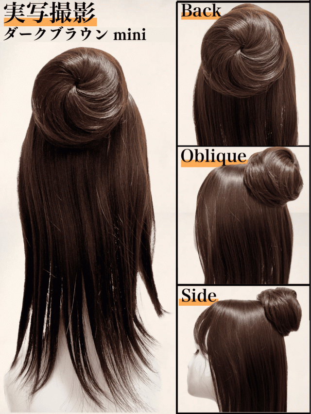 お団子ウィッグ 子供用 控え目 ウィッグ お団子 ゴム式 ポイントウィッグ 付け毛 ストレート 日常 和装 着物 浴衣 [3点セット] レディース 女性 社交ダンス 耐熱 Uピン付 説明書付 おだんご シニヨン ダークブラウン Luce brillare ルスブリラーレ お団子mini+
