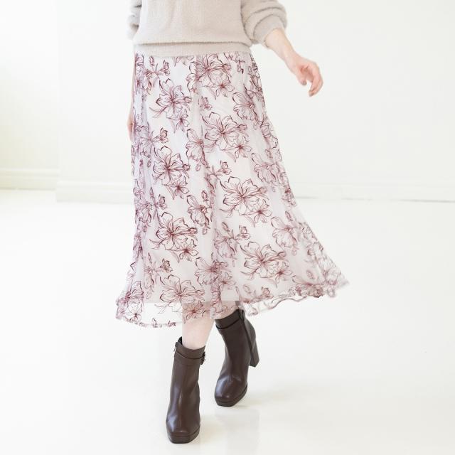 刺繍フラワースカート/MM337225