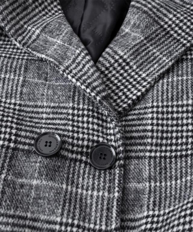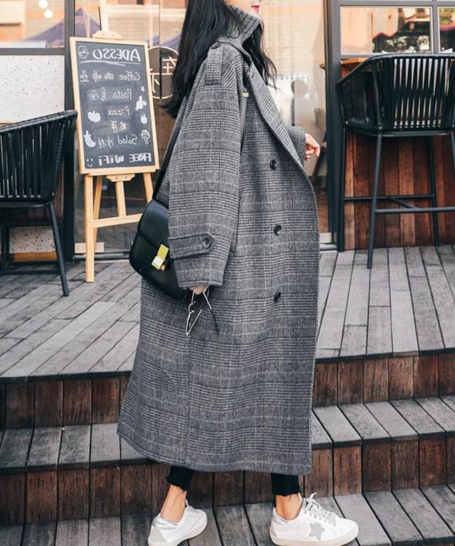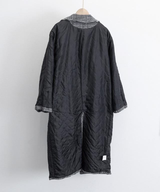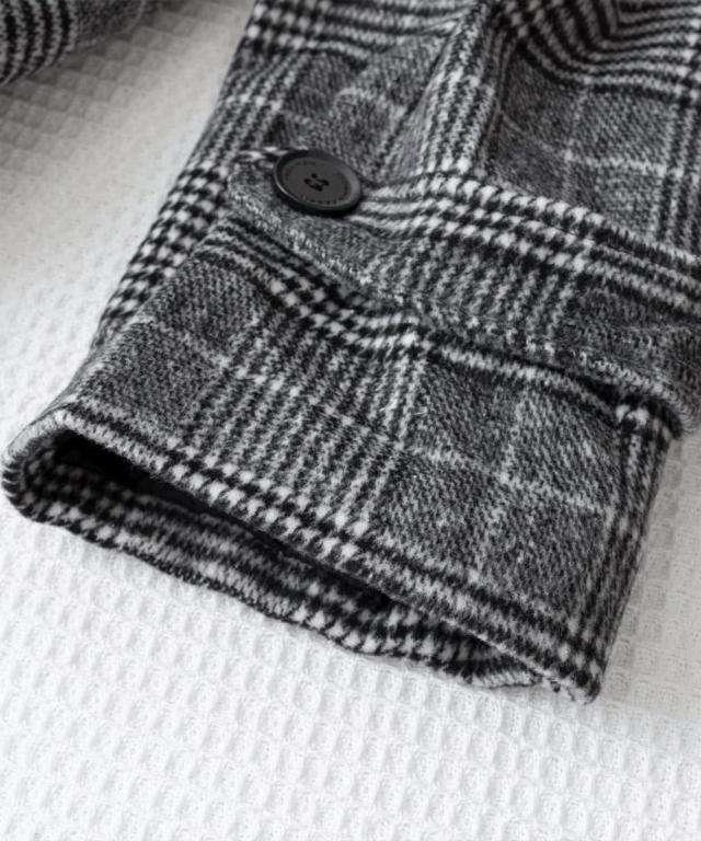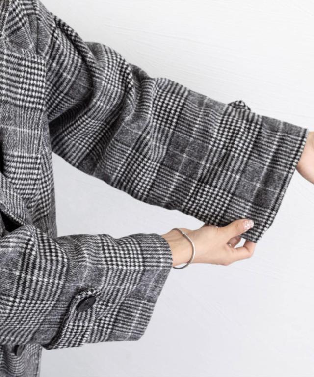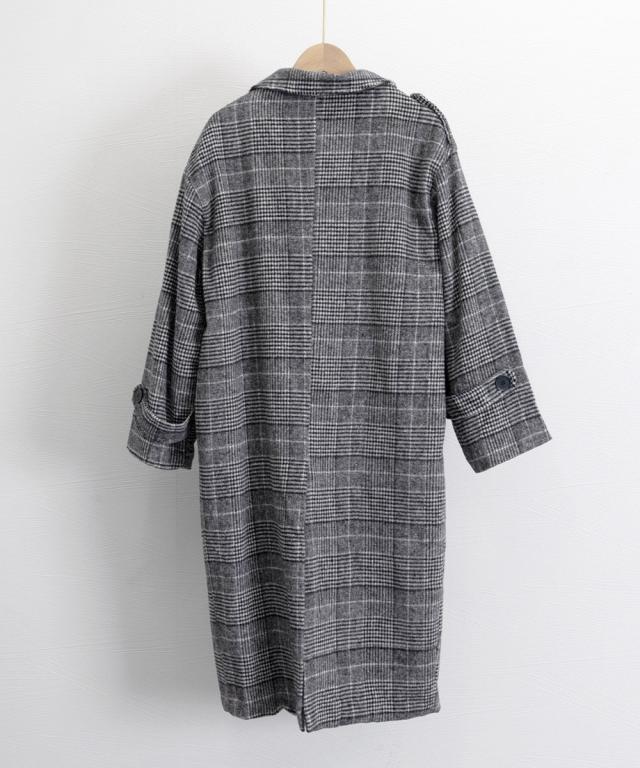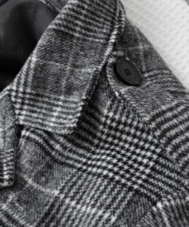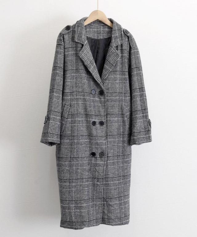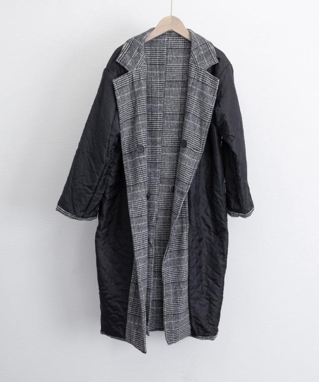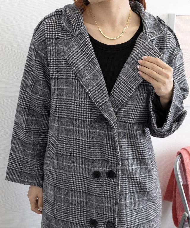 中綿入りで暖か、纏うだけで大人らしい品格とこなれ感が漂う韓国DESIGNのグレンチェック柄ロング丈チェスターコート