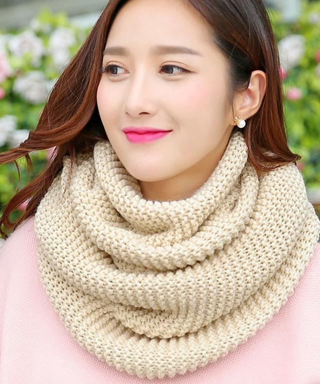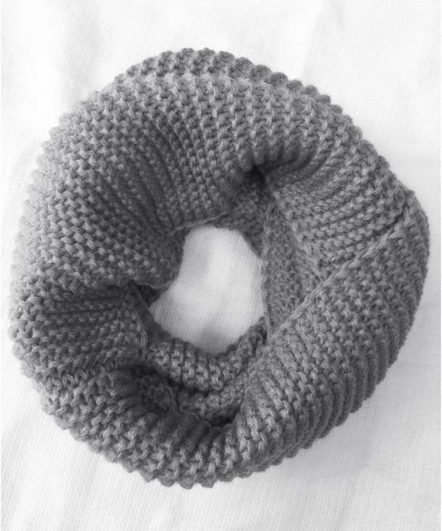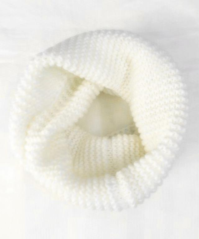 伸縮性があり、ふんわりとした柔らかな素材感で肌触りの良い仕上がりニットスヌード