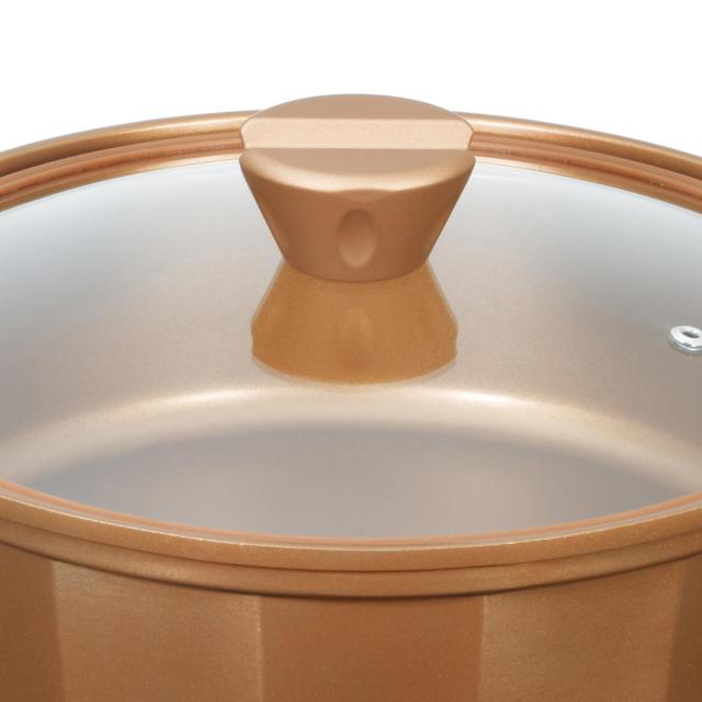マットで落ち着きのあるゴールドカラーの食卓鍋です。いつもの食卓を豊かで居心地のよい空間に演出します。