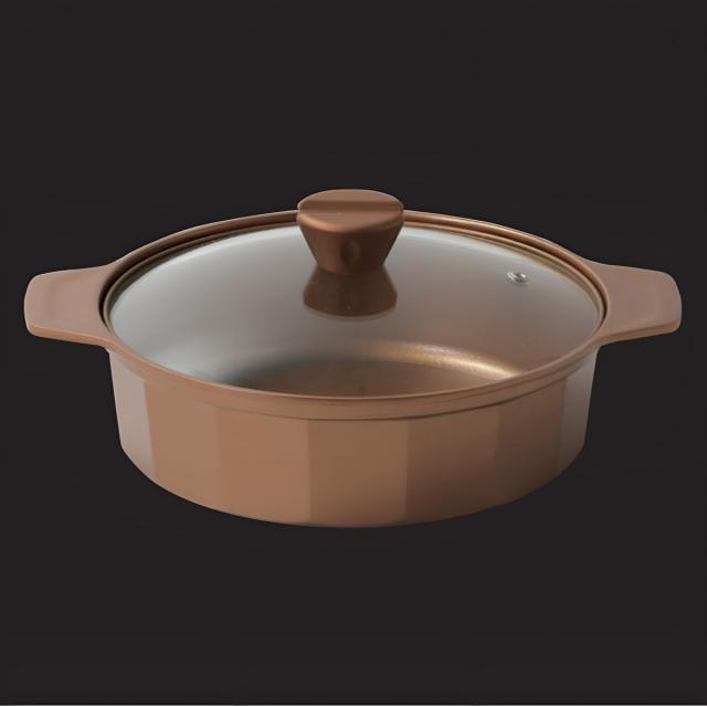 ●落ち着きのあるマットなゴールドカラーの卓上鍋です。