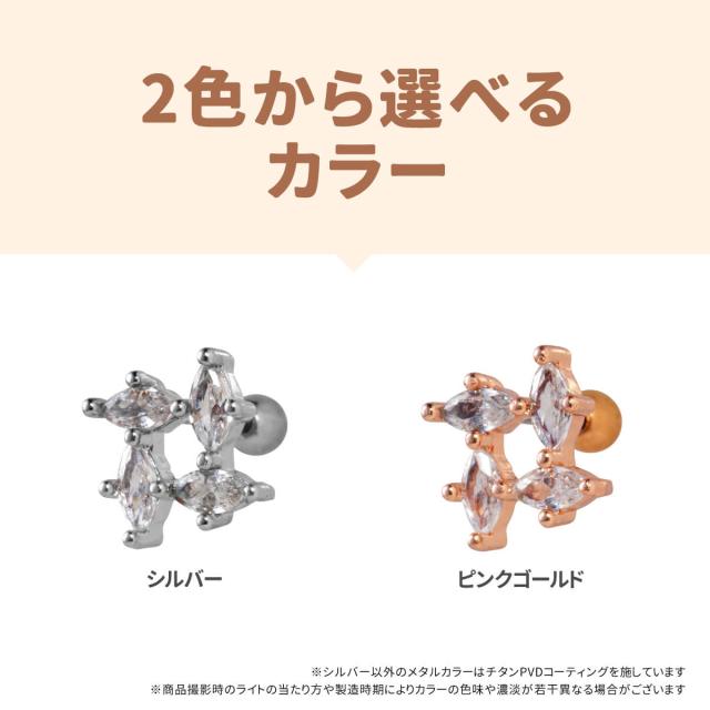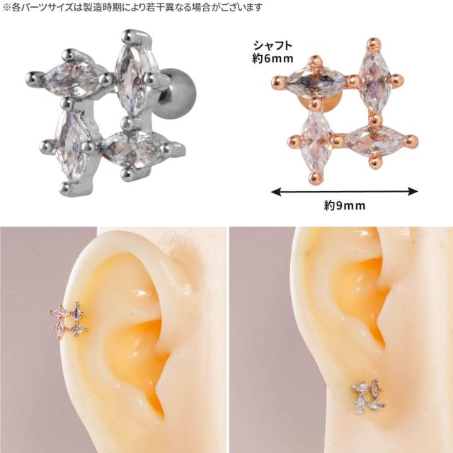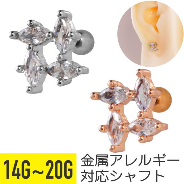 リーフ ジュエル スクエア ストレートバーベル 14G 16G 18G 20G サージカルステンレス ヘリックス ジルコニア 軟骨ピアス ボディピアス