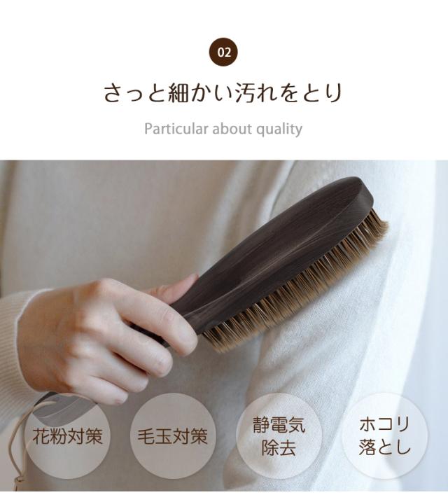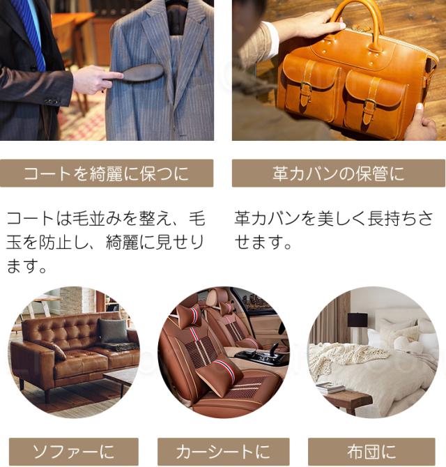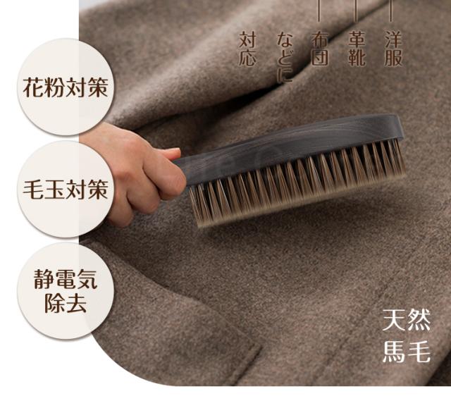 馬毛ブラシの清潔力は強いし、馬毛ブラシは細かいところまで入り、花粉や埃が落ちる、洋服ブラシとしてソファー、布団、靴などにもきれいに掃除できます。