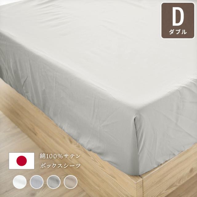 ボックスシーツ 綿100% ダブル 日本製サテンカバー なめらか 快適 やわらかい 肌に優しい 23J007