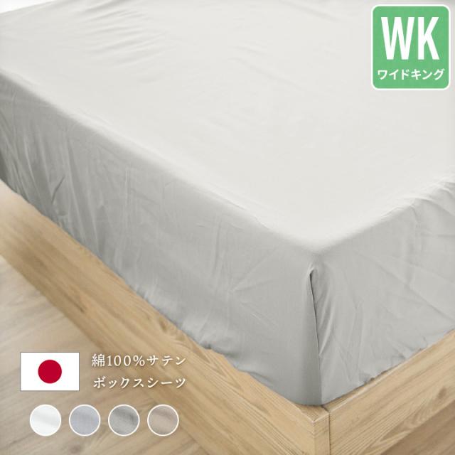 ボックスシーツ 綿100% ワイドキング 日本製サテンカバー なめらか 快適 やわらかい 肌に優しい 23J009