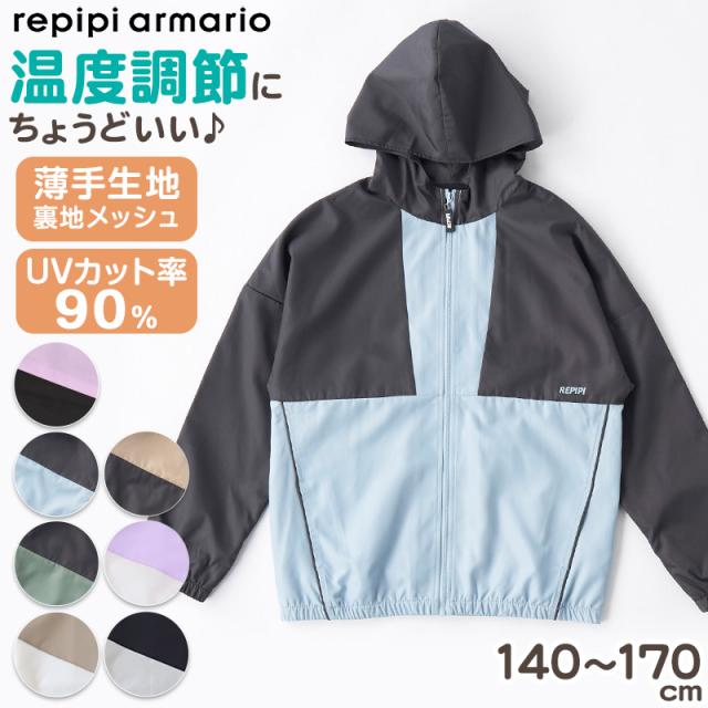 ウィンドブレーカー キッズ ジュニア 女の子 ガールズ アウター 軽量 UVカット 防風 通学 通園 羽織り ジャケット フード付き 薄手 140 150 160 170 春 秋 子供服 おしゃれ カジュアル ティーン 小学生 中学生 repipi armario