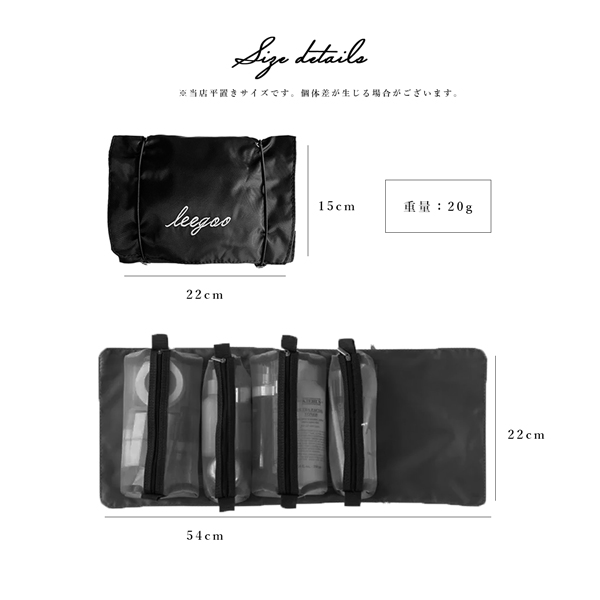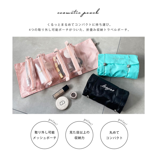 くるっとまとめてコンパクトに運べる折り畳み収納トラベルポーチ。