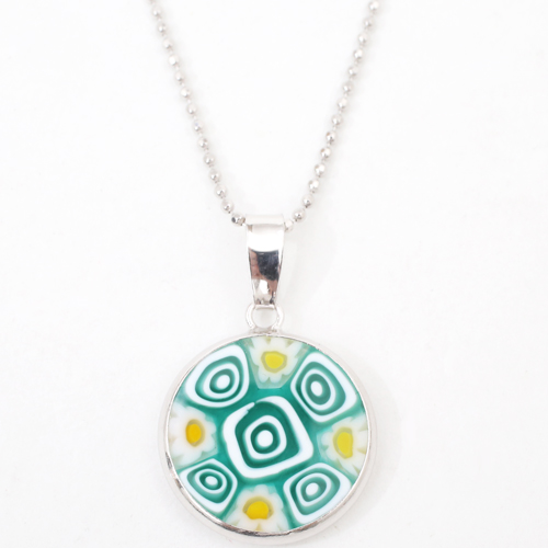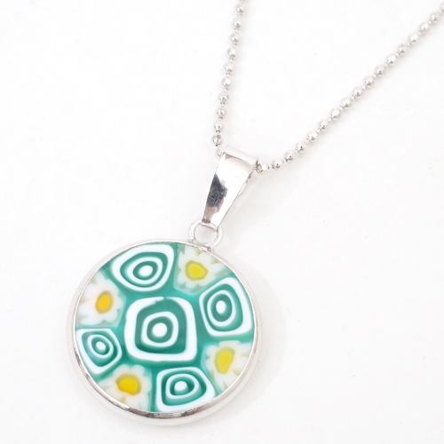 ヴェネチアングラス ベネチアングラスペンダント ベネチアンガラス グリーン 緑 ハンドメイドアクセ シルバー925 ヴェネチア Glass VENETIAN ミレフィオリ【クリックポスト便】