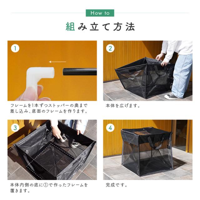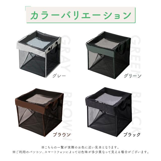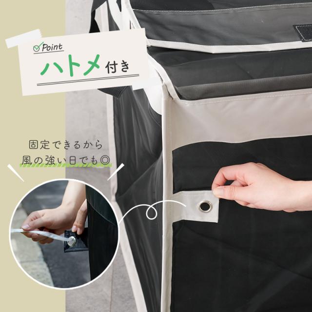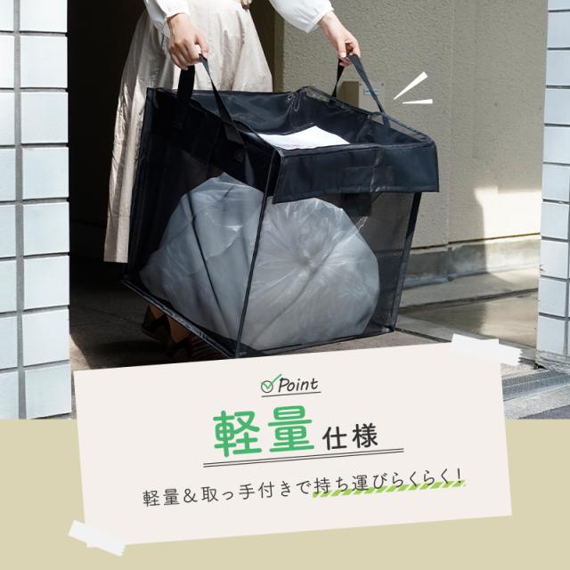 - カラスがゴミを漁るので、購入しました。早々に発送いただいて助かりました。また、折り畳めるので、仕舞う場所に困らず、助かっています。たまに中に入れている支柱が抜けてしまうので、星4にしました。