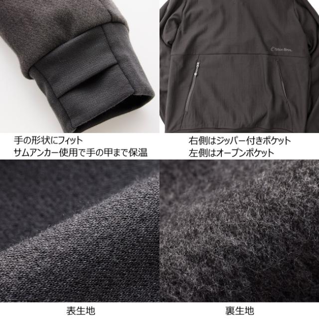 裏面を起毛させることで非常に暖かく、柔らかな着用感を実現しています。