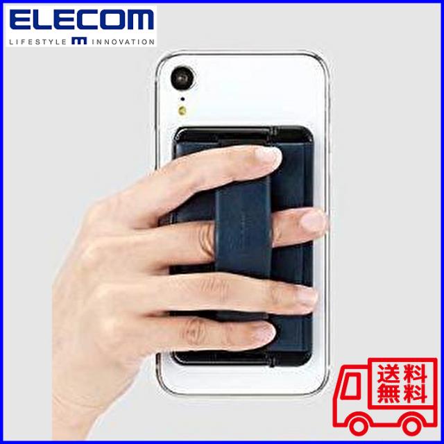 【送料無料】エレコム スマートフォン用ストラップ スマホバンド レザー カードホルダー カード収納 スタンド機能 スマホリング ELECOM P-STBLCNV ネイビー
