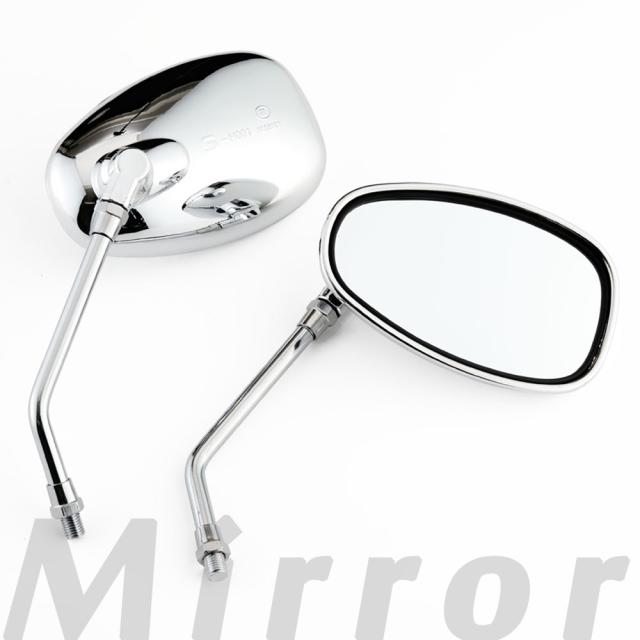 オーバル ミラー メッキ 丸型 楕円形 10mm 左右セット 正ネジ 汎用 バイク カスタム パーツ 社外品 平面鏡 角度調整 ストリート ネイキッド