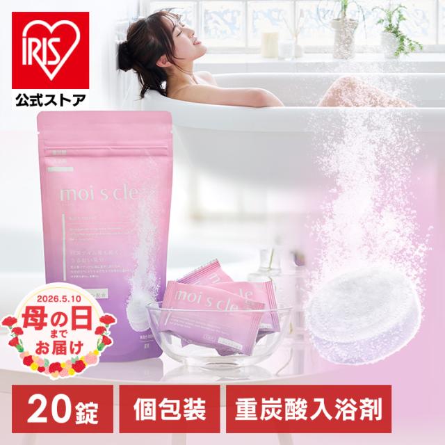医薬部外品]【20錠】 入浴剤 ギフト 重炭酸 プレゼント モイスクル 20錠 炭酸 冷え タブレット 保湿成分配合 疲労回復 血行促進 お風呂 乾燥肌 温活 個包装 薬用 無着色 無香料 アイリスオーヤマ【2026年 母の日】