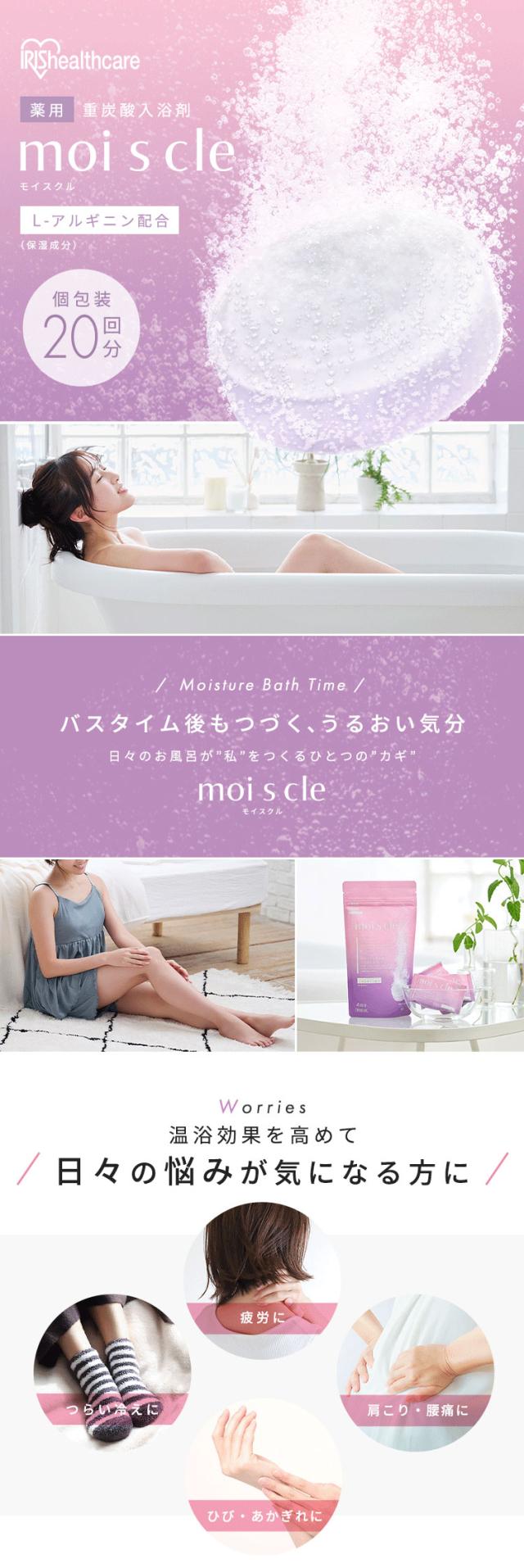 医薬部外品]【20錠】 入浴剤 ギフト 重炭酸 プレゼント モイスクル 20錠 炭酸 冷え タブレット 保湿成分配合 疲労回復 血行促進 お風呂 乾燥肌 温活 個包装 薬用 無着色 無香料 アイリスオーヤマ