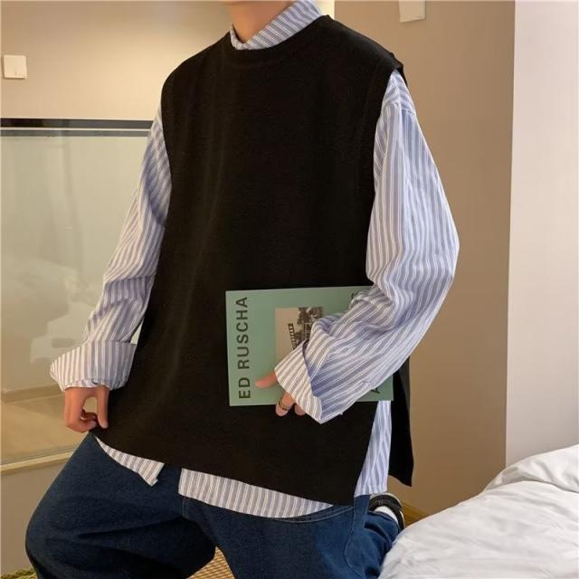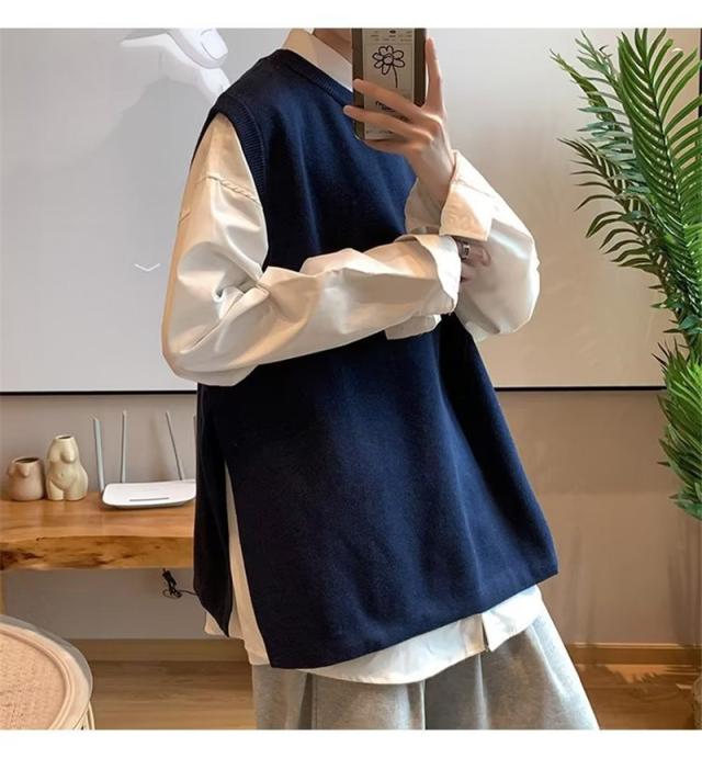 ベスト メンズ ニットベスト プルオーバー チョッキ クルーネック インナー ゆったり スクールベスト 暖か 防寒 通勤 通学 重