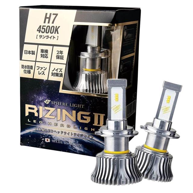 スフィアライト RIZING2 H7 4500K 4800lm ノイズ対策済 日本製 LED ヘッドライト ハイビーム ロービーム フォグライト フォグランプ ライジング2 SPHERELIGHT 交換用バルブ LEDバルブ 2年保証 SRH7045