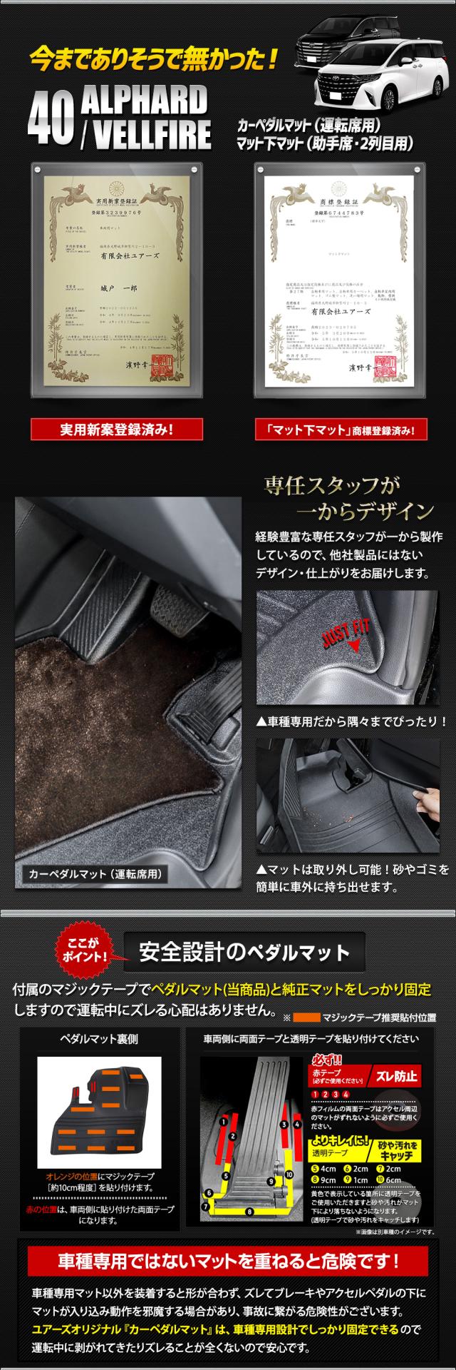 アルファード 40系 ヴェルファイア 40系 専用 3Dマットセット ペダルマット フロアマット 2列目 運転席 助手席 ラゲッジ 防汚 掃除 TOYOTA