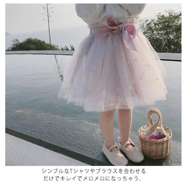 キッズ チュールスカート チュチュ ふんわり ボリューム ベビー 赤ちゃん 幼児 スカート ボトムス リボン 星 フレア 発表会 衣装 ダンス 誕生日 プレゼント 寝相アート 80cm 90cm 100cm 110cm 120cm 130cm