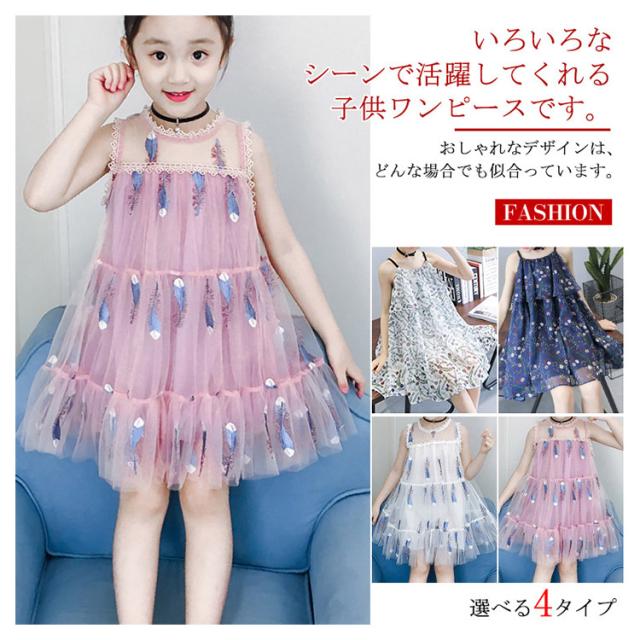 子供服 キャミソールワンピース ノースリーブワンピース シフォンワンピース 女の子 ノースリーブ シフォン 韓国スタイル 花柄 可愛い 110 120 130 140 150 160