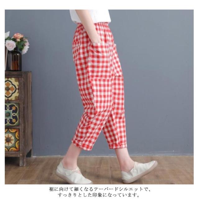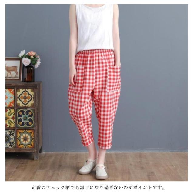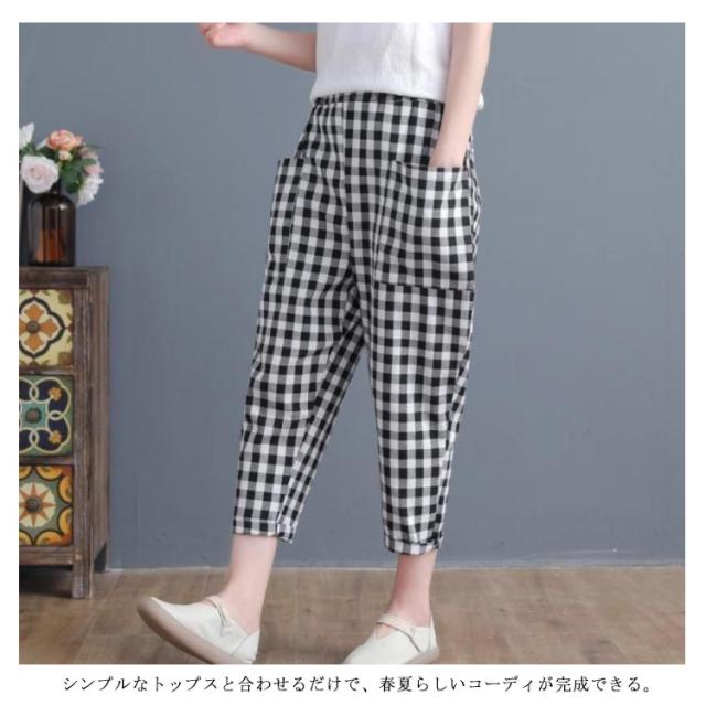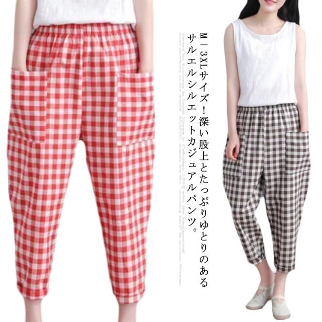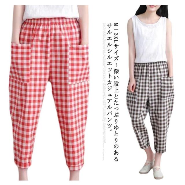 M−3XLサイズ!サルエルパンツ チェック柄 アンクルパンツ サルエル クロップドパンツ チェック柄 カジュアルパンツ 7分丈 パンツ カジュアル 春夏 レディース ゆったり 可愛い 送料無料