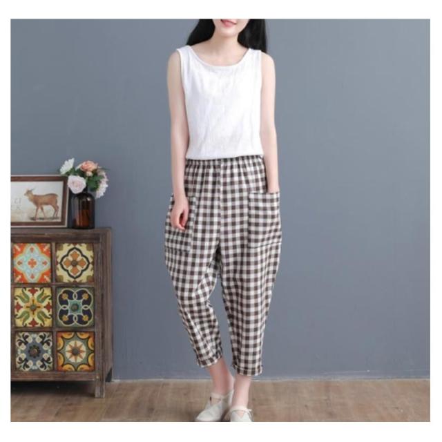 | M−3XLサイズ!深い股上とたっぷりゆとりのあるサルエルシルエットカジュアルパンツ。 ナチュラルでさらっとした綿混素材なので、洗いざらしで穿くだけでもお洒落に見えること間違いなし。 裾に向けて細くなるテーパードシルエットで、すっきりとした印象になっています。 定番のチェック柄でも派手になり過ぎないのがポイントです。 シンプルなトップスと合わせるだけで、春夏らしいコーディが完成できる。 | |