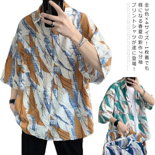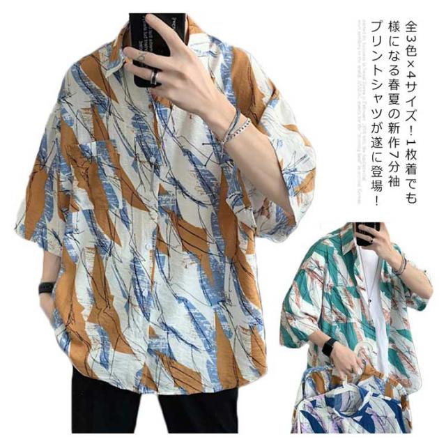 アロハシャツ 大きサイズ ハワイシャツ ハワイ シャツ 七分袖シャツ カジュアル メンズ 開襟シャツ プリントシャツ 春 夏 アロハ イベント 祭り 旅行 海 総柄 おしゃれ 夏服 夏物 送料無料