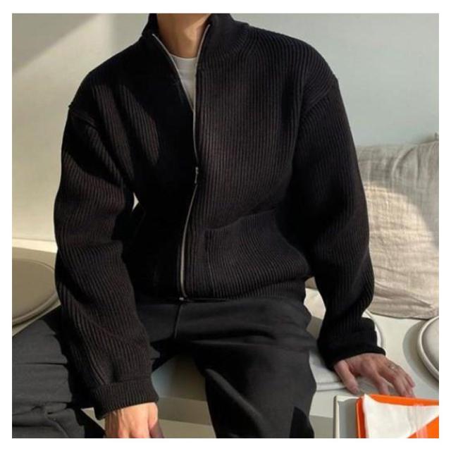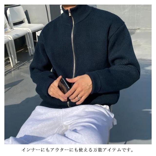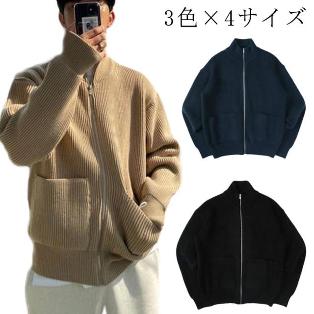 ジップアップニット メンズ ニット ブルゾン 長袖 スタンドカラー ジップアップ ゆったり セーター アウター ハイネック ジャケット スタンドカラー スタンドニット