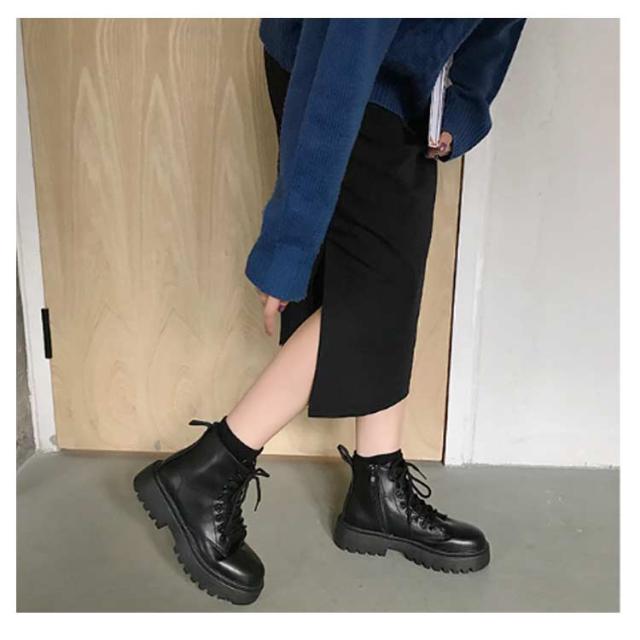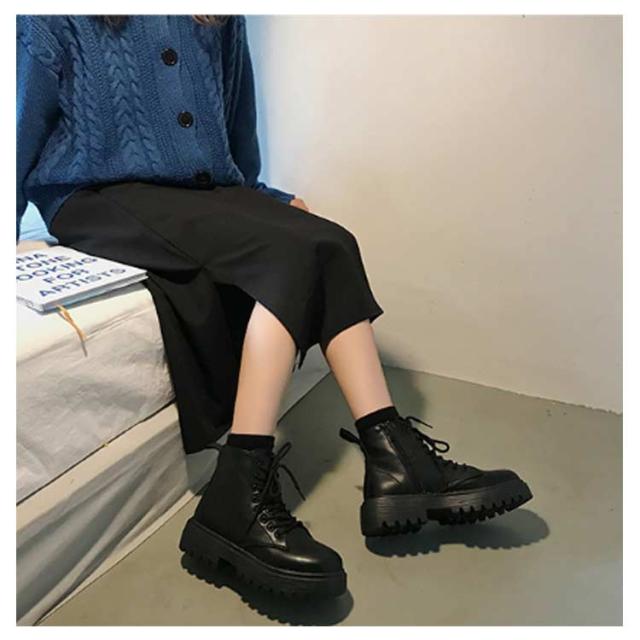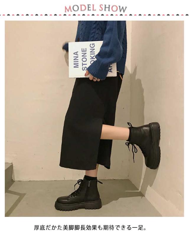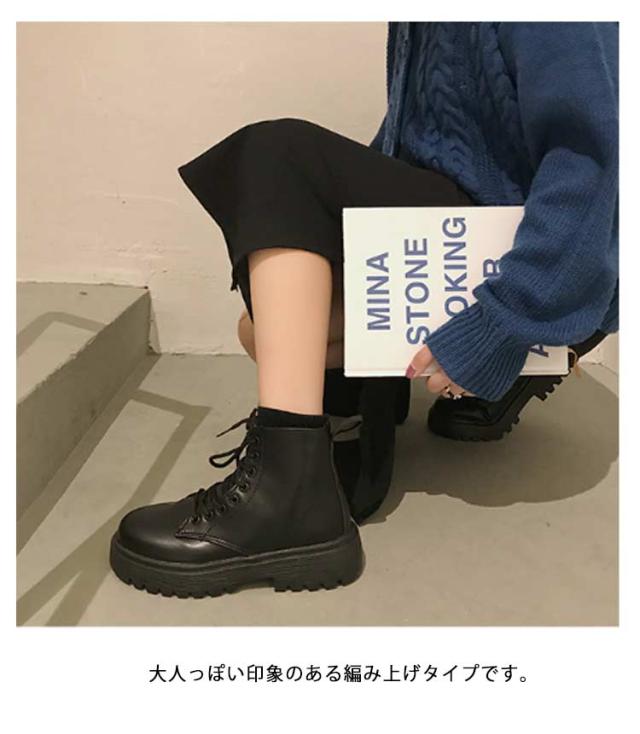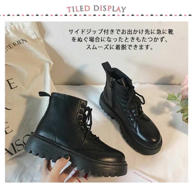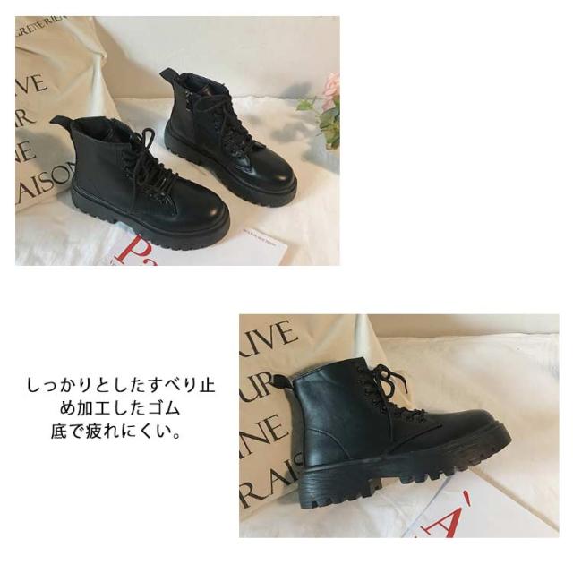 厚底ブーツ ショートブーツ 編み上げブーツ 厚底 裏ボア ローヒール サイドジップ ブーティ レースアップシューズ ワークブーツ 歩きやすい 安定感 春 秋 冬 おしゃれ