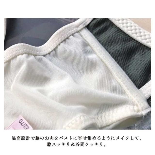 | ボディの丸みに沿った立体設計で、快適フィットのノンワイヤーブラジャー。 ノンワイヤーなのにしっかり盛り!バストトップを中央に寄せて広がりがちな胸や脇のお肉をスッキリ! 脇高設計で脇のお肉をバストに寄せ集めるようにメイクして、脇スッキリ&谷間クッキリ。 女性らしい繊細かつ華やかなレースデザインに仕上げました。 肌にあたる面を特殊なラテックス地に仕上げたため、やわらかい肌触りになりました。 | |