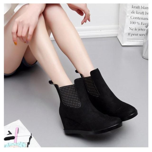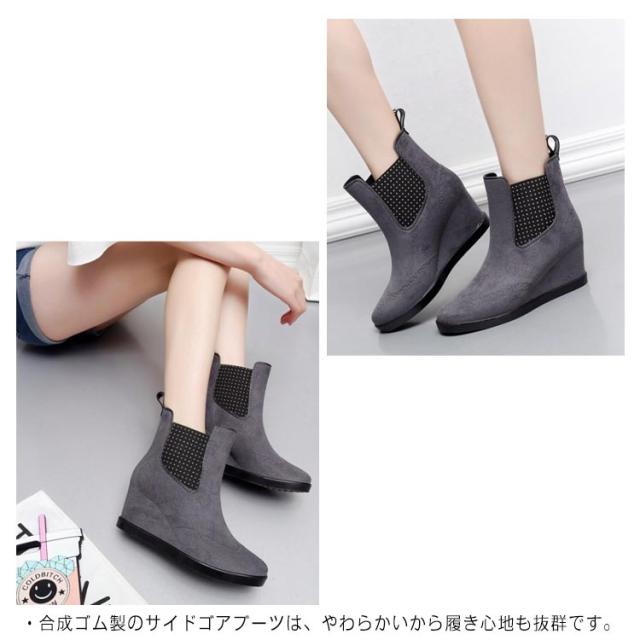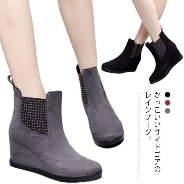痛くない レディース 5.5cmヒール サイドゴア ショート 厚底 レインブーツ 歩きやすい 雨靴 ゴム 長靴 ウェッジソール